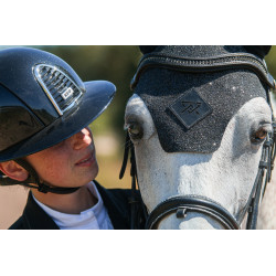 Bonnet d’équitation technique, stable et respirant, intégralement recouvert de paillettes sur sa partie principale. Les oreilles sont volontairement laissées sans paillettes pour assurer liberté de mouvement, douceur et confort sous le filet. Le bonnet conserve une excellente tenue, sans surépaisseur gênante, et reste léger malgré son aspect sophistiqué.
