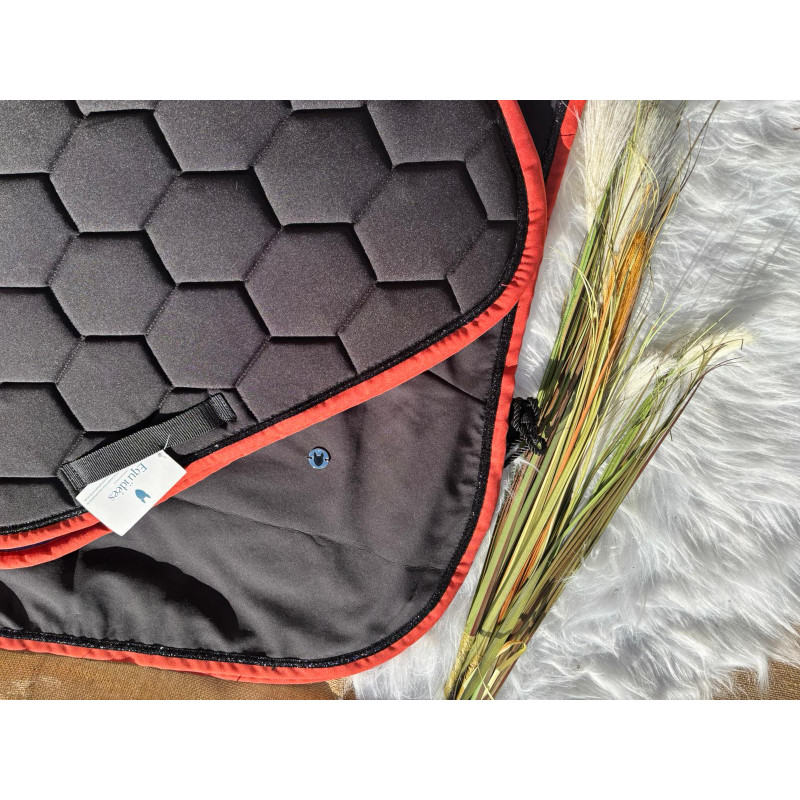 Protégez votre cheval avec style grâce à ce couvre reins noir orné de paillettes noires. Fabriqué en softshell doublé polaire, ce couvre reins bord terracotta est à la fois élégant et fonctionnel. Gardez votre cheval au chaud et au sec pendant les sorties équestres avec ce couvre reins de qualité.