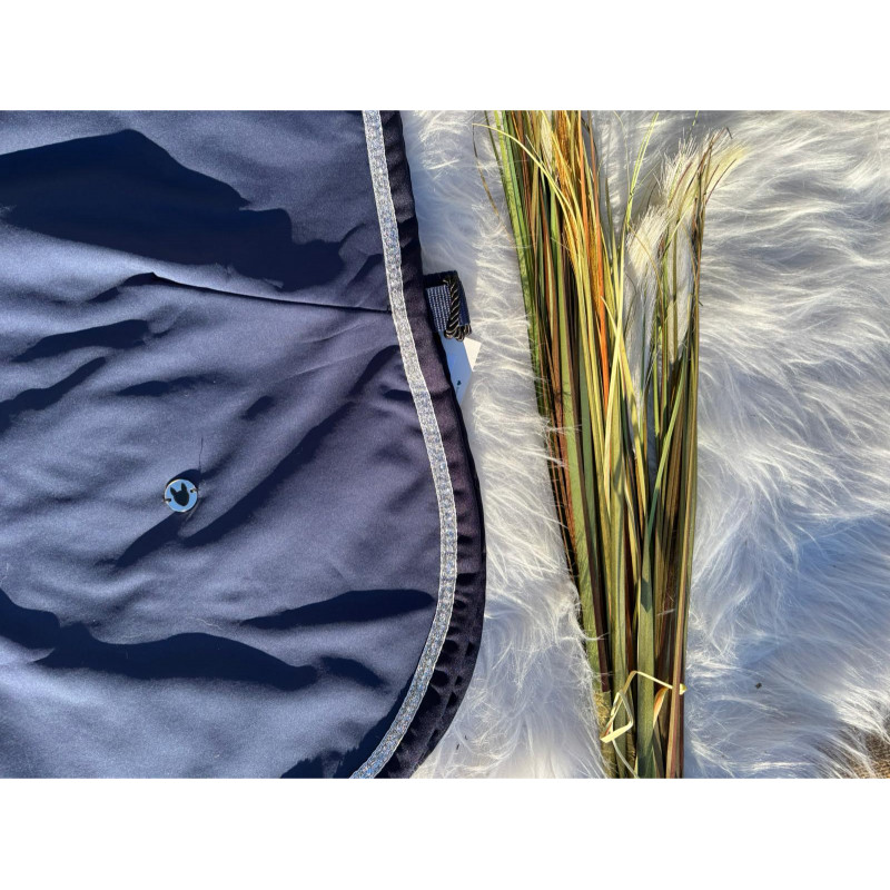Protégez votre cheval avec style grâce à ce couvre reins marine orné de paillettes noires. Fabriqué en softshell doublé polaire, ce couvre reins bord cuivre est à la fois élégant et fonctionnel. Gardez votre cheval au chaud et au sec pendant les sorties équestres avec ce couvre reins de qualité.