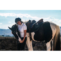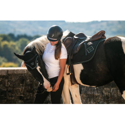 une coupe ergonomique et stable sous la selle, une matière respirante et absorbante, et une fabrication durable qui allie confort du cheval et élégance du cavalier.